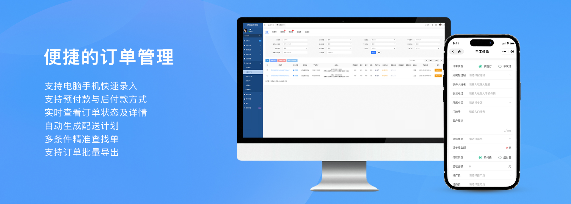 全面兼容手機、平板等移動設備,無論在辦公室或配送途中,隨時隨地都能便捷管理訂單、查看數據。